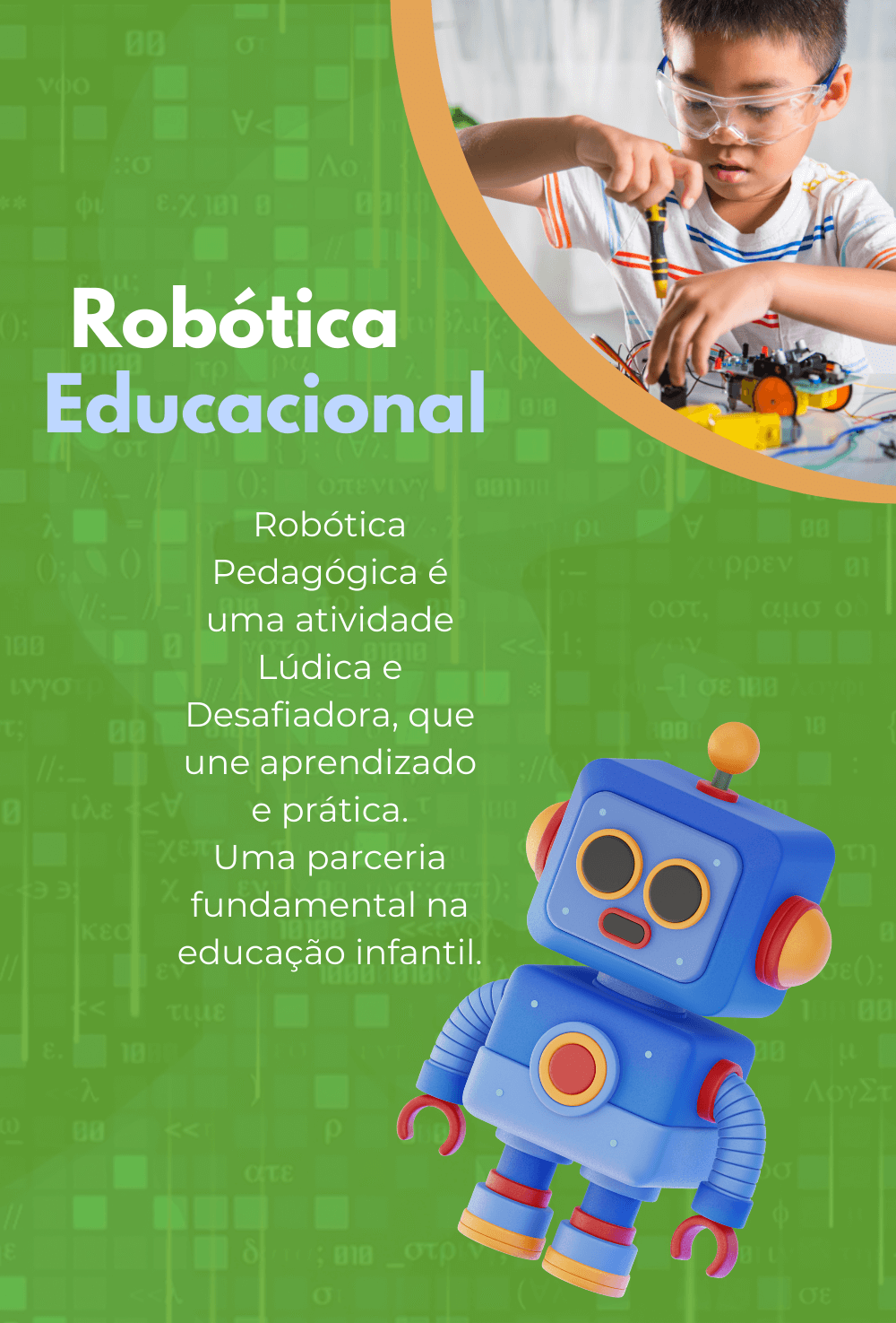 A robótica educacional transforma o aprendizado em uma experiência prática e divertida. Por meio de projetos criativos, montagem de kits tecnológicos e programação, os alunos desenvolvem habilidades essenciais para o futuro, como raciocínio lógico, resolução de problemas, criatividade e trabalho em equipe. As aulas estimulam o pensamento crítico e aproximam os estudantes do mundo da ciência e tecnologia, preparando-os para os desafios da era digital. Aqui, aprender é construir, explorar e inovar!
